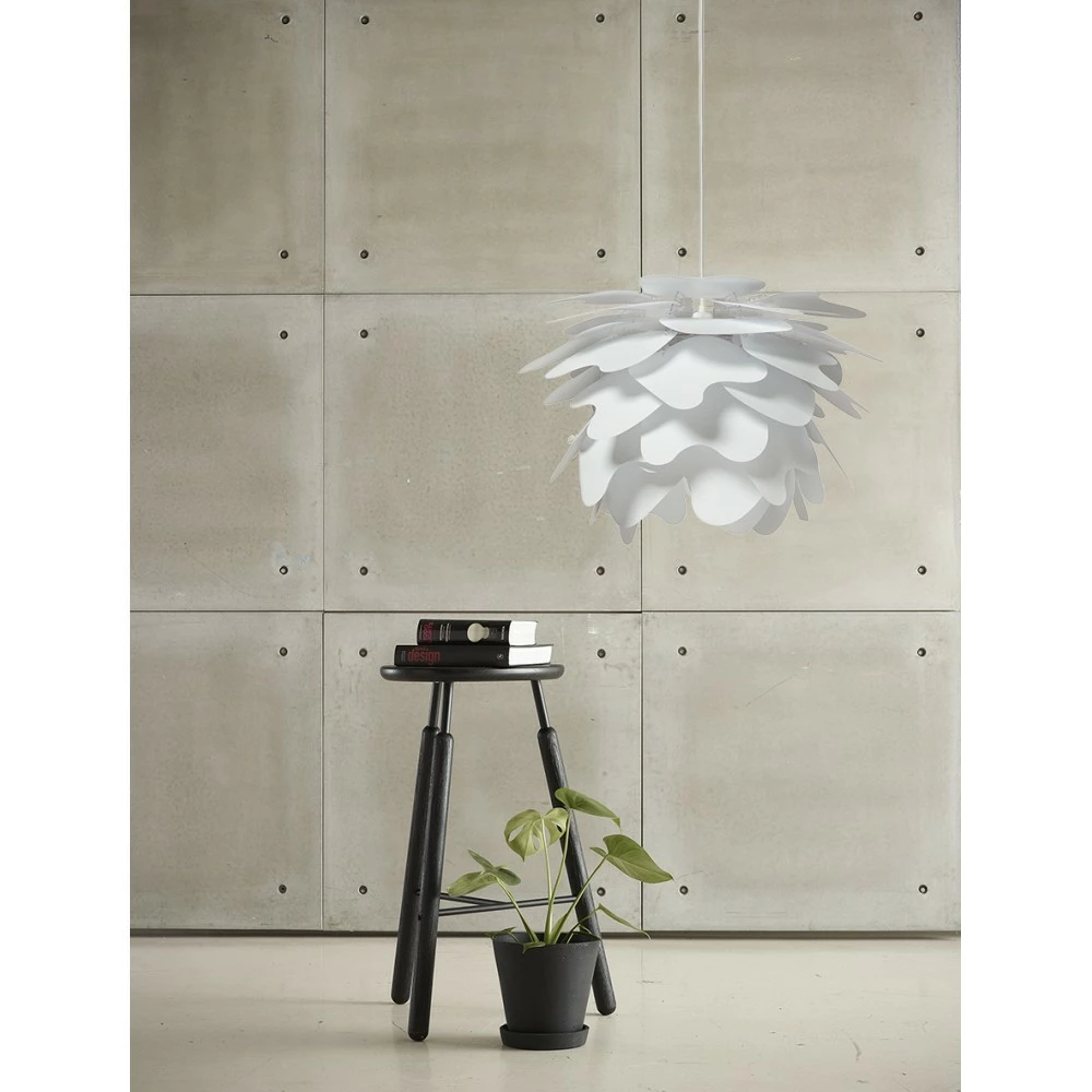 llumin by DybergLarsen er et unikt gør-det-selv koncept, hvor du på få minutter kan samle din nye lampe. Den flotte sorte æske indeholder alle dele du skal bruge; lampestativ, 40 blade der udgør skærmen, 3 meter stofledning og den unikke loft roset, Rosetta der passer til lige lofter og til skrå lofter op til 45 grader.