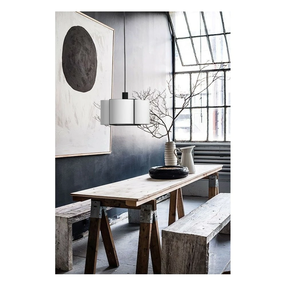 Paradice serien er designet ud fra den kendte kubbe som er en tidsløs geometrisk figur. De smalle linjer gør lampen minimalistisk og tidsløs. De hvide skærme kan monteres hvis dette ønskes. På den måde kan lampen ændres fra det hyggelige til det lidt mere stramme udtryk. Large lampen fylder rigtig godt og vil pynte meget flot over et stort spisebord, eller alene i et rum. Også uden de hvide skærme med en pynte lyskilde som blikfang.