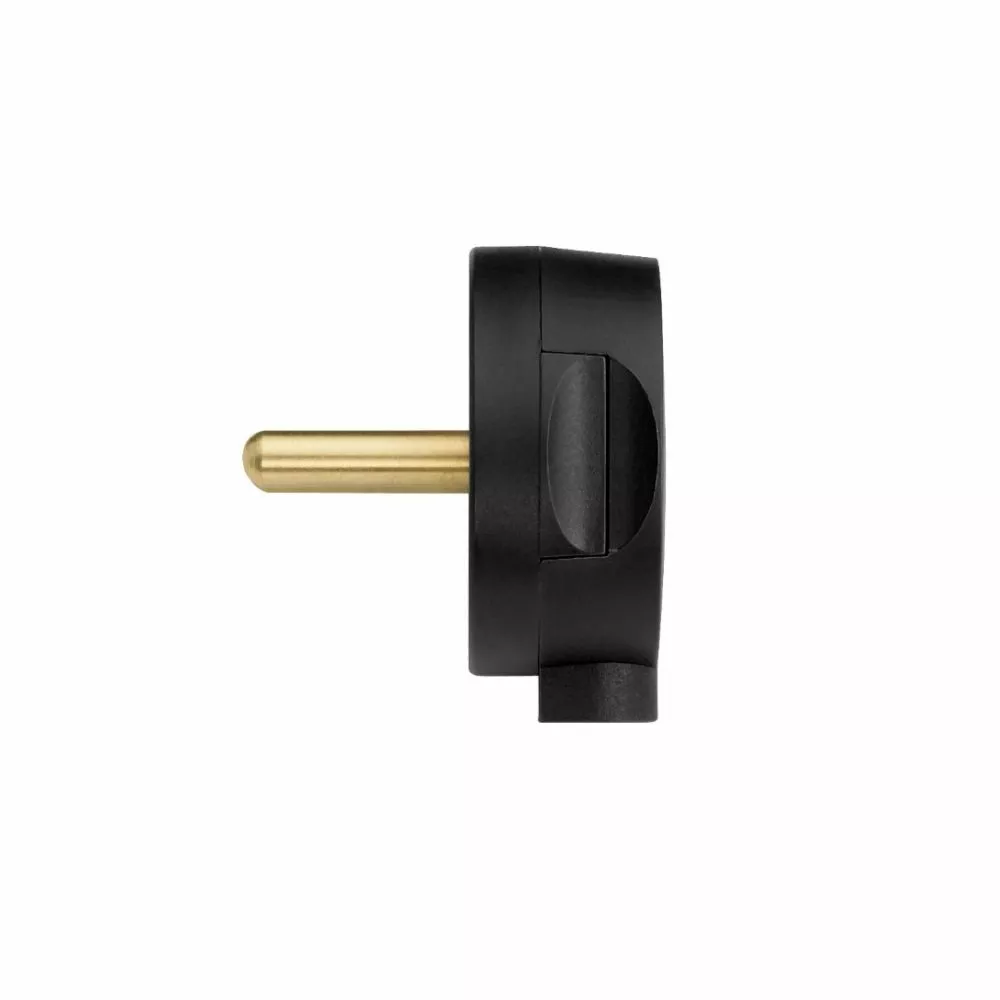 Flad stikprop med en praktisk vinkel, der gør stikproppen velegnet til tilslutninger på steder, hvor der ikke er så meget plads, eller hvor det passer bedre, at ledningen sidder i en vinkel til stikproppen.