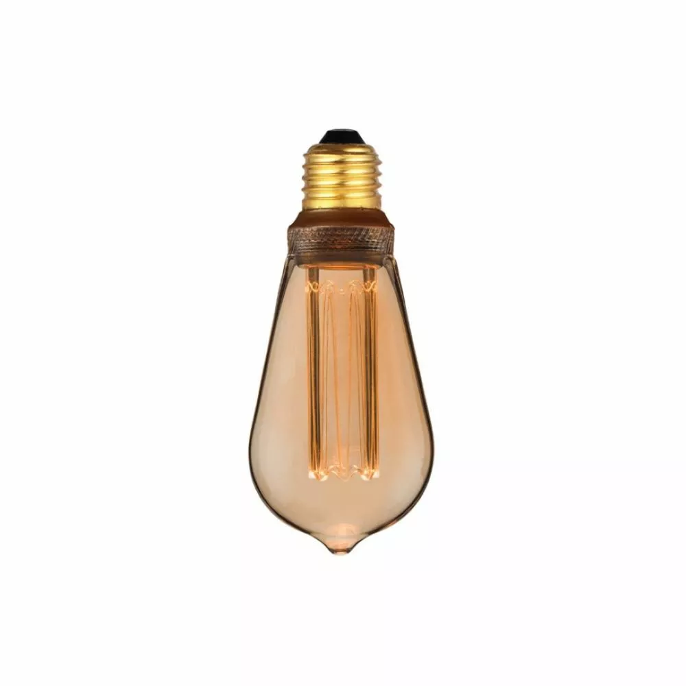 lyskilden er med klart glas samt en toning i det gyldne og spreder lyset 360 grader, hvilket giver den perfekte belysning i rummet.