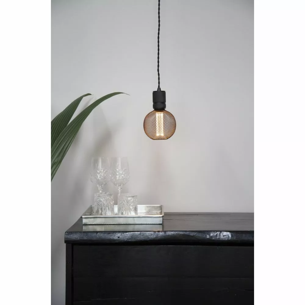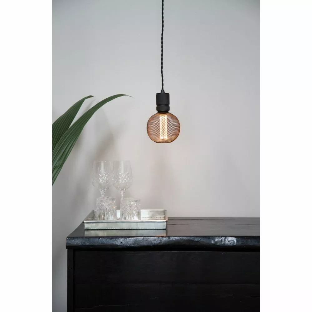 Det smukke design på lyskilden er skabt med et specielt glas-cylinderrør hvorfra den spreder sit smukke lys ud gennem det sort lakeret gitter, der giver den perfekte dekorationsbelysning, samtidigt er en rigtig god kobling mellem naturen og det industrielle look.