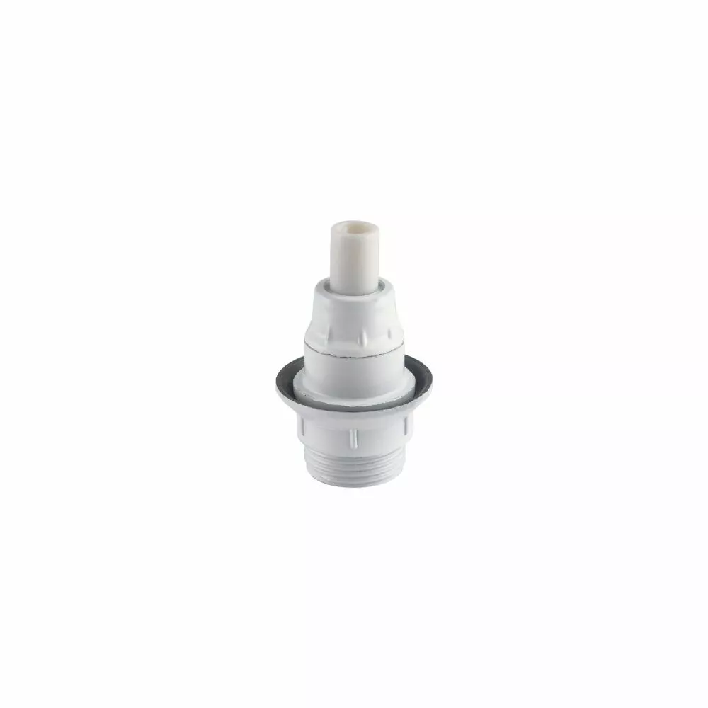 Combi fatning der er hvidlakeret, designet giver et råt udtryk når den hænger uden skærm, og passer specielt godt sammen med stofledninger