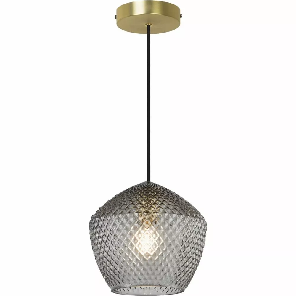 Serien kombinerer børstet messing med en pentagon-formet glaskuppel prydet med et smukt diamantmønster, der fremhæver glassets glans, og giver en enestående lyseffekt i rummet.