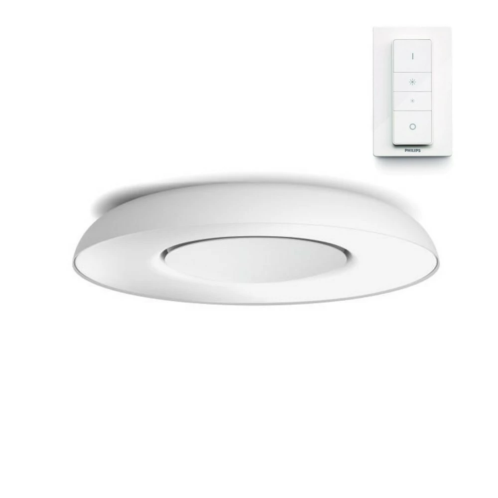 Brug Still Philips Hue hvid atmosfære-loftsbelysning sammen med dit Philips Hue-system, og få glæde af naturligt, hvidt lys, der hjælper dig med at vågne, få energi, fokusere, læse og slappe af. Nyd det elegante loftbelysningsdesign, der passer til enhver indretning.