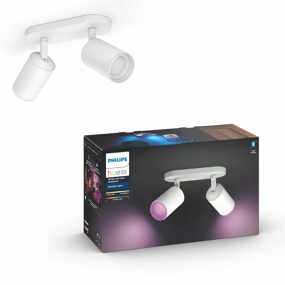 Denne Philips Hue Fugato er en loftslampe med to White and color ambiance GU10 spots, der giver dig stor frihed og uendelige muligheder, når du skal indrette din hverdag og dit liv med belysning