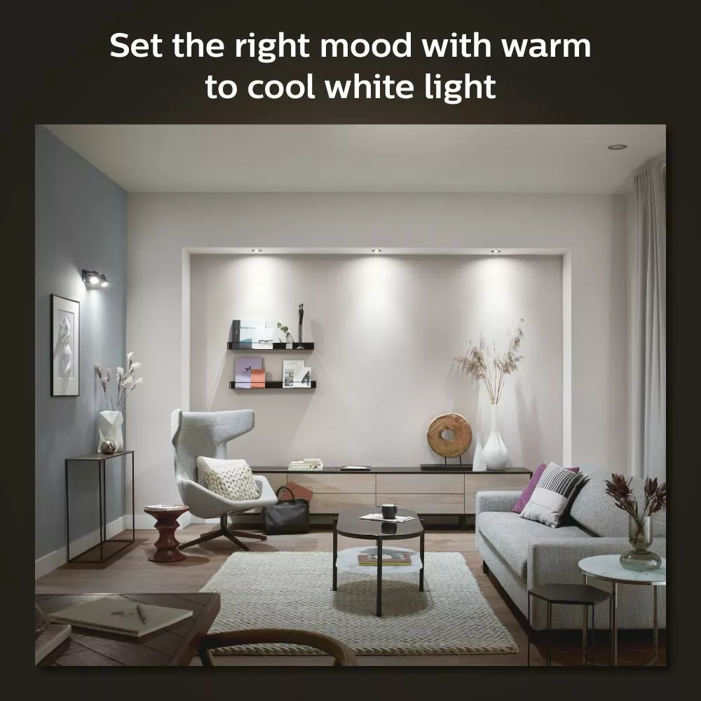 Med White ambiance kan du skifte mellem koldt, energigivende hvidt lys og varmere gulligt lys, der giver en mere afslappende atmosfære