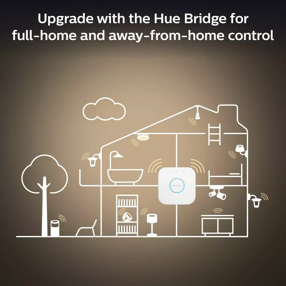 Med en Hue Bridge kan du tilføje op til 50 intelligente lyskilder og betjene dem overalt i dit hjem