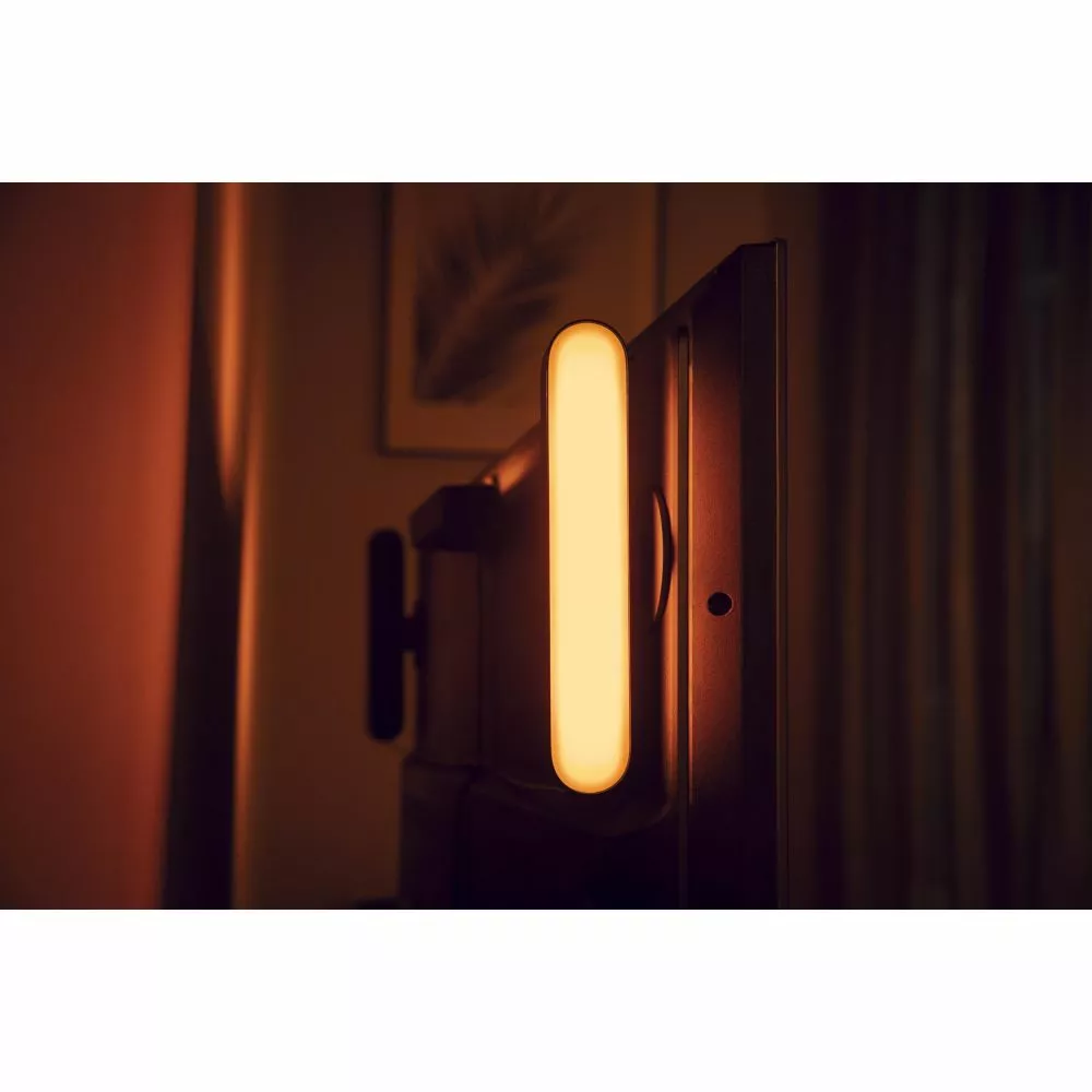Monter den intelligente Philips Hue Play light bar bag skærmen med de medfølgende klemmer og dobbeltklæbende tape for øjeblikkeligt at skabe smuk baggrundsbelysning i din foretrukne farve.