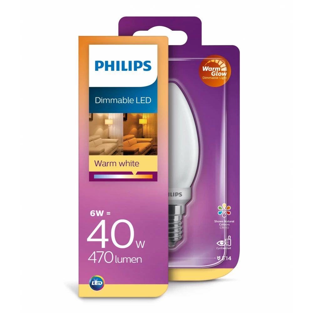 Philips LED Glas kerte, 40W, E14, warm glow, mat dæmpbar, 1 stk – 8718699697198