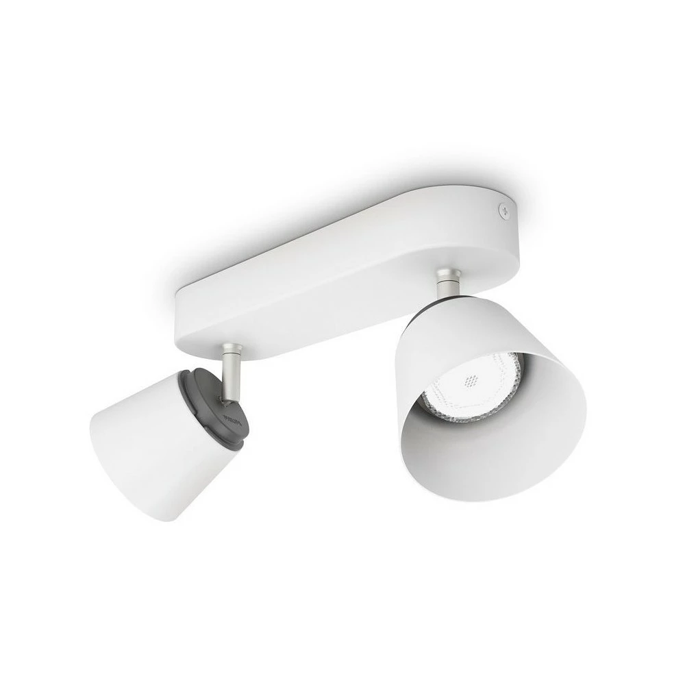 Den dobbelte Philips myLiving Dender-metalspot i hvid har en lang elegant hals og en stor klokke. Den velkendte form giver rummet en elegant stil, og de avancerede LED’er spreder varmt hvidt lys, der er klart og smukt som halogen.