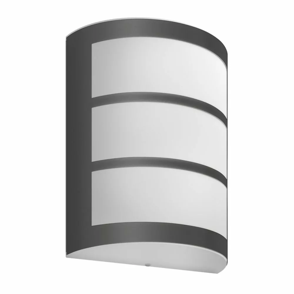 Philips Python væglampen i antracit giver din væg et moderne look. Den oplyser din indgang med et diffust og køligt hvidt lys.