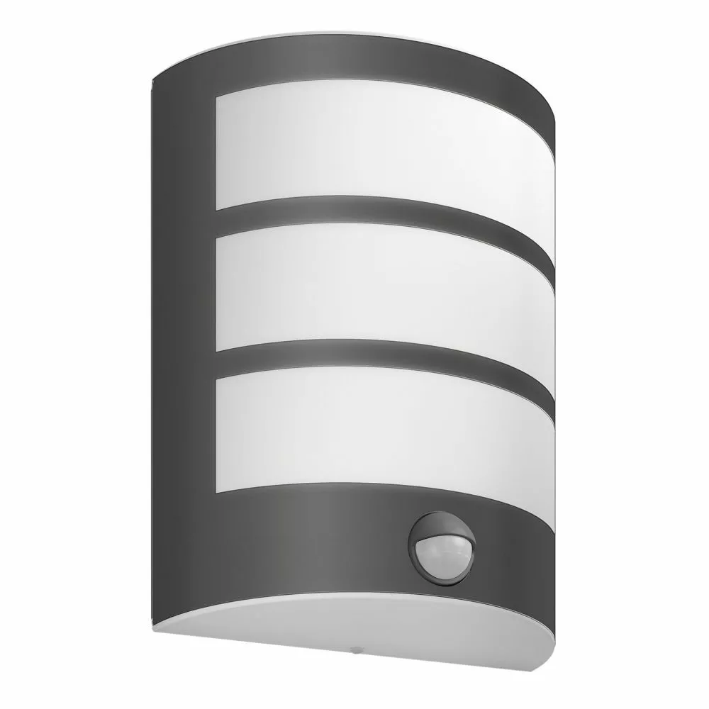 Philips Python væglampen i antracit giver din væg et moderne look. Den oplyser din indgang med et diffust og køligt hvidt lys. Væglampen har en integreret bevægelsessensor, som automatisk tænder, når der er nogen i nærheden af den.