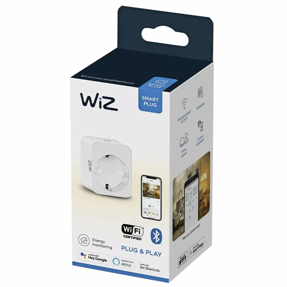 Gør enhver stikkontakt intelligent med en WiZ smart plug med et indbygget power meter, der måler, hvor meget strøm stikkontakten bruger.
